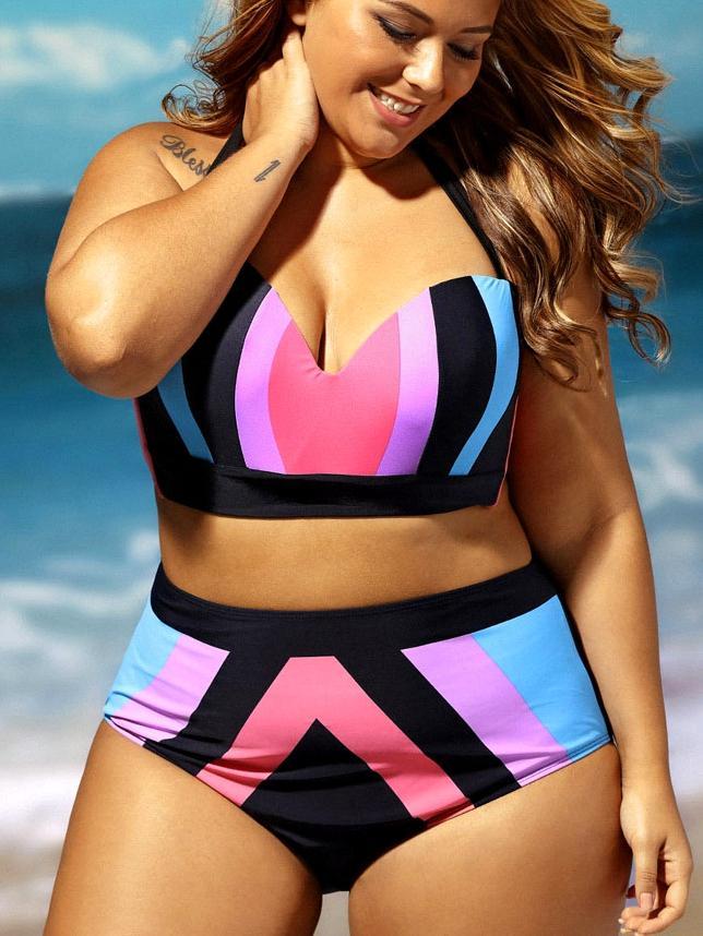 Sexy Bikini Print High Waist Sling Large Size Split Swimsuit