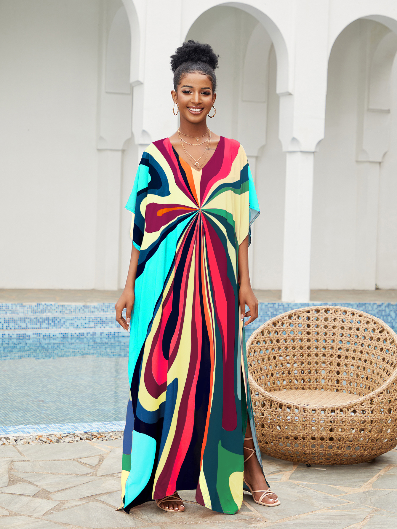New Cotton Positioning Printed Beach Blouse, Robe-style Holiday Sunscreen Shirt, Bikini Outer Blouse