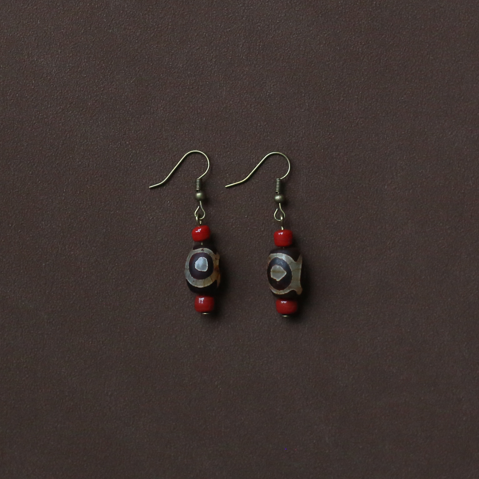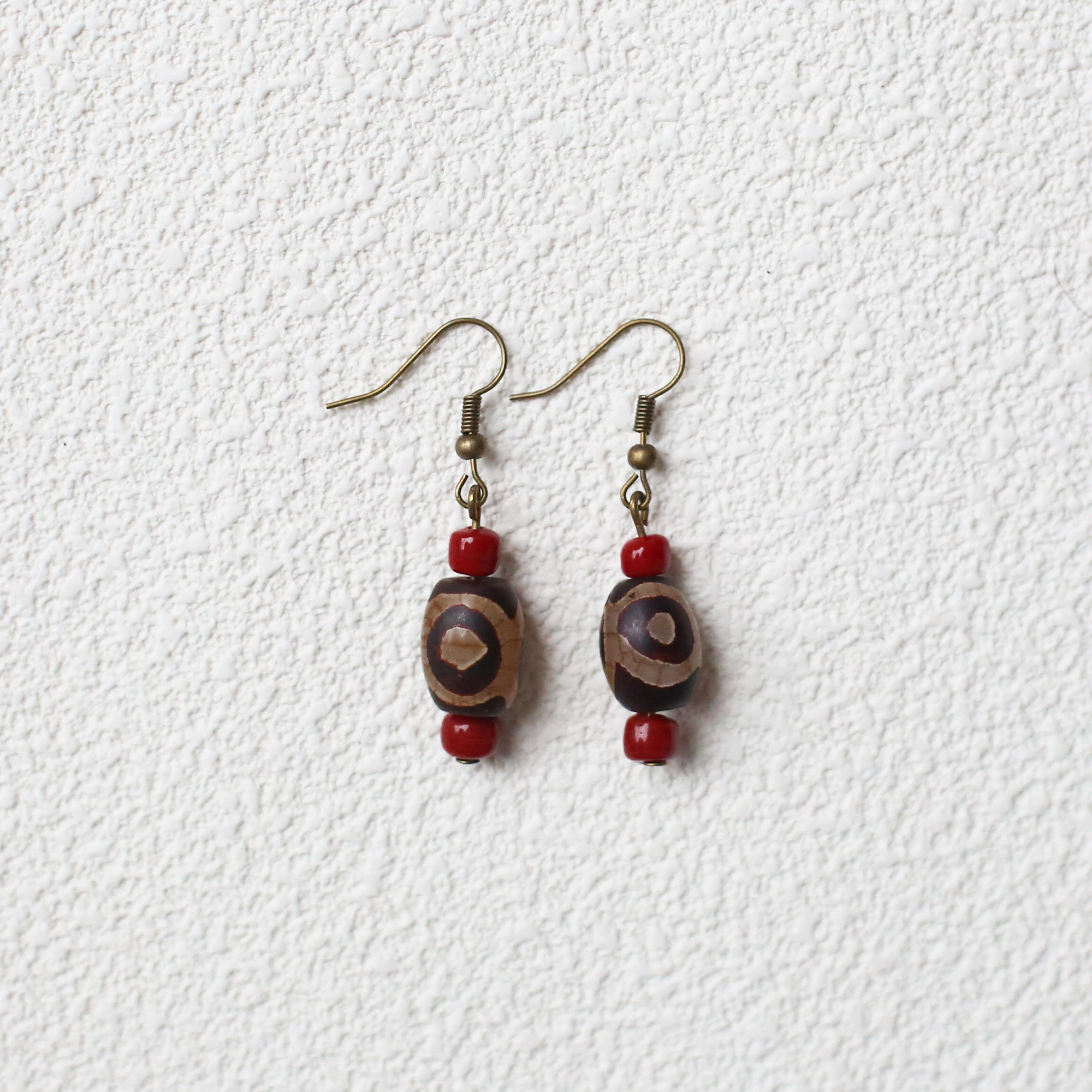 Tibetan Agate Dzi Bead Earrings, Niche Retro Ethnic Style Jewelry