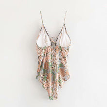 • Load image into Gallery viewer, Bohemian V-neck sling cross straps hollow stretch print one-piece swimsuit