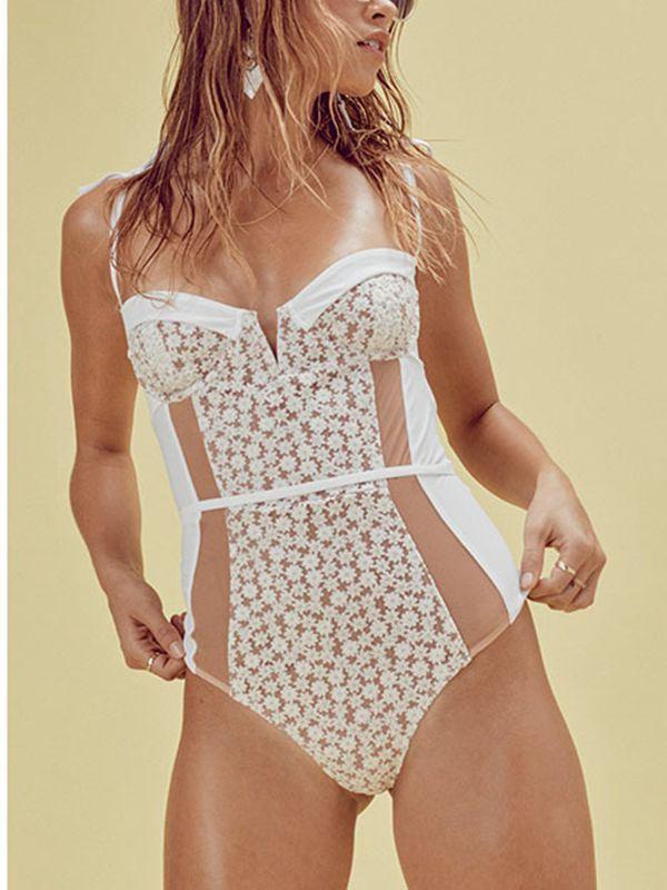 Butterfly Bandage Lady Floral Tight-fitting One-piece Halter Swimsuit Bikini