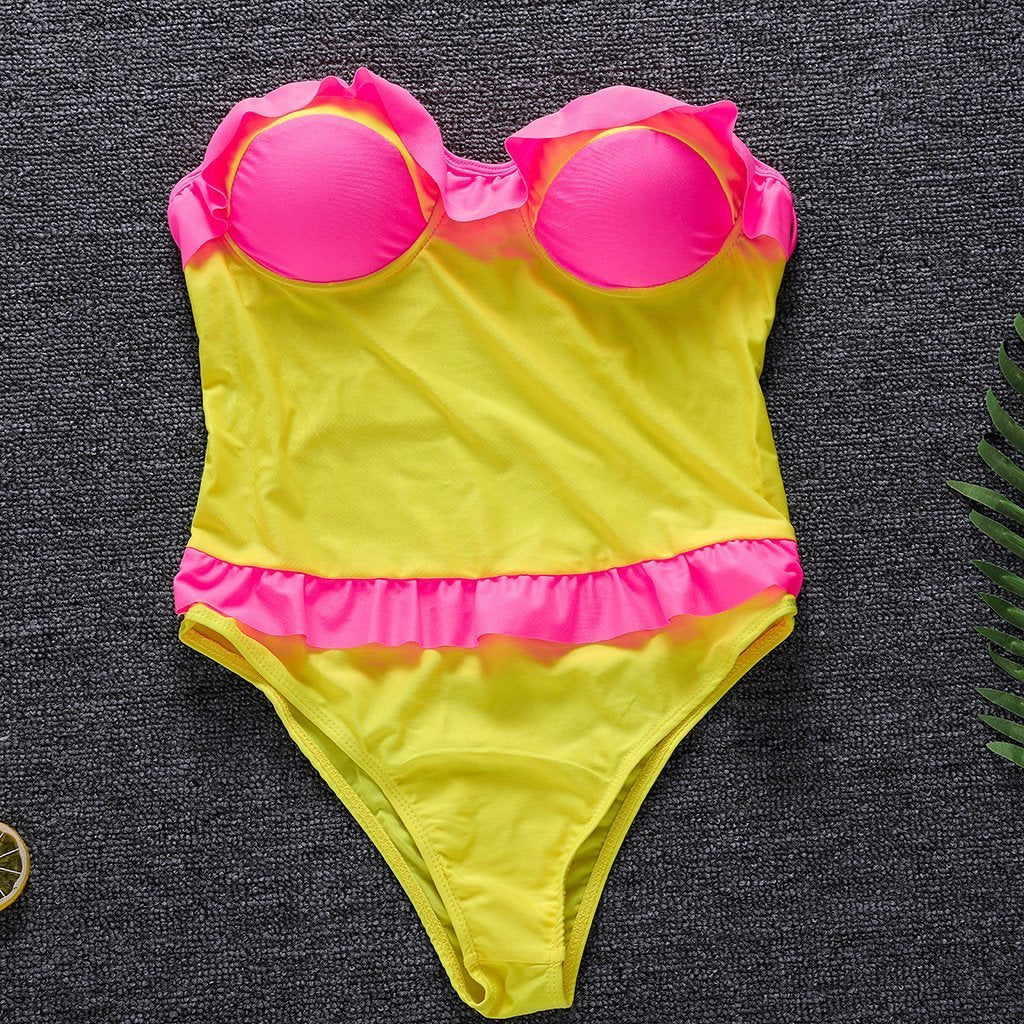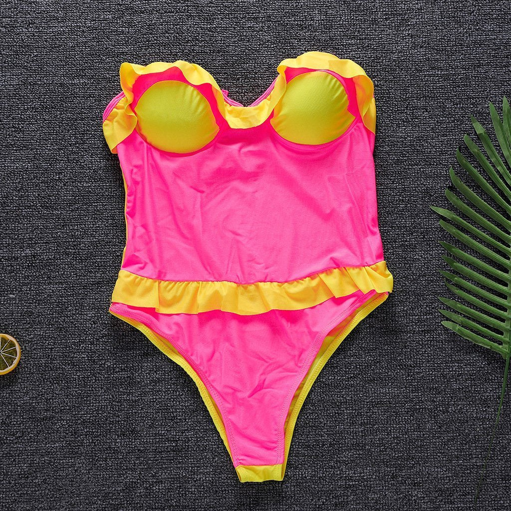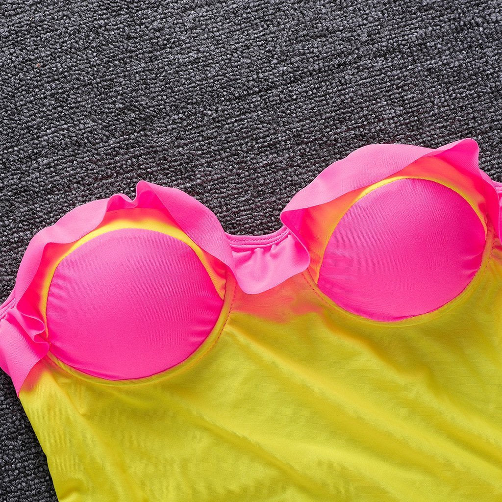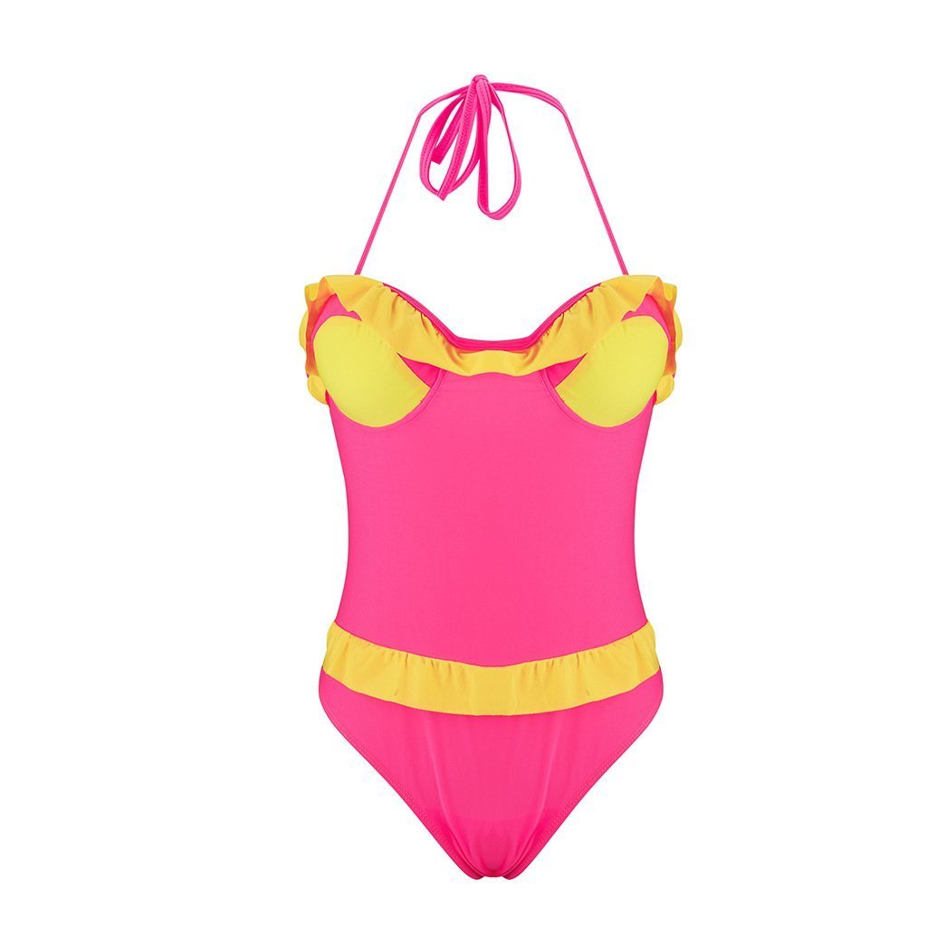 Sexy Lace-up Belly Halter Ruffled One-piece Bikini Swimsuit
