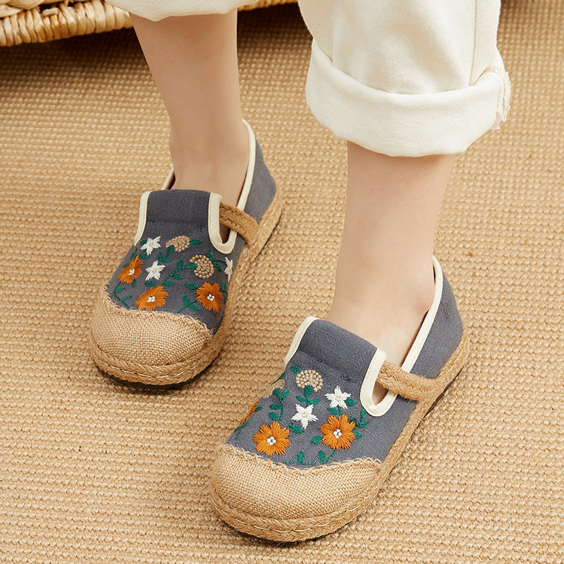 spring embroidered shoes flat-heeled, low-cut embroidered shallow shoes, literary and ethnic style women's shoes linen casual shoes