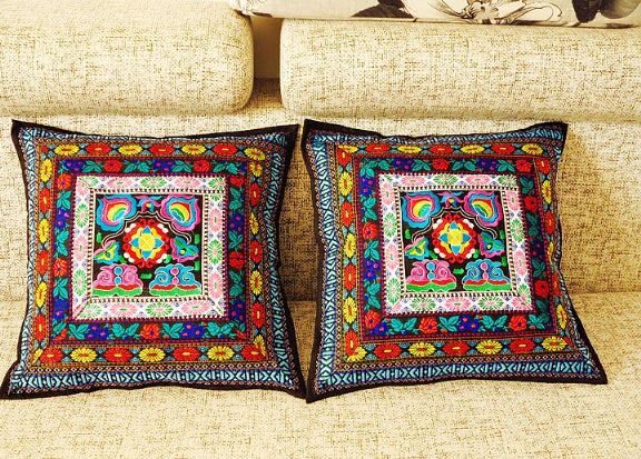 Ethnic Handicrafts Fabric Embroidery Pillowcase National Style Flower Picture Cushion cover