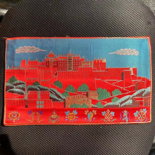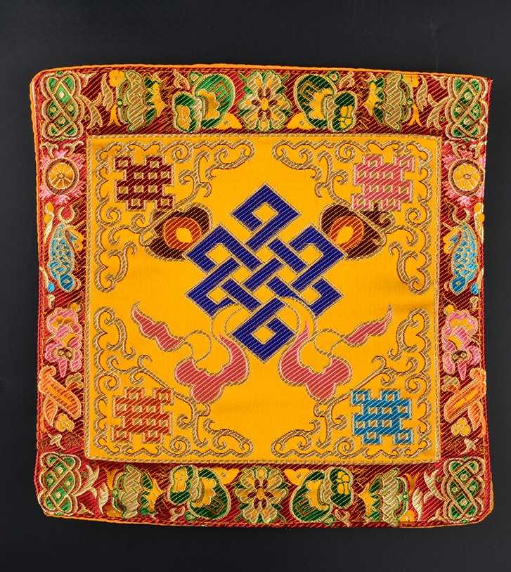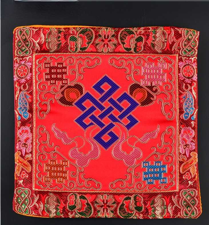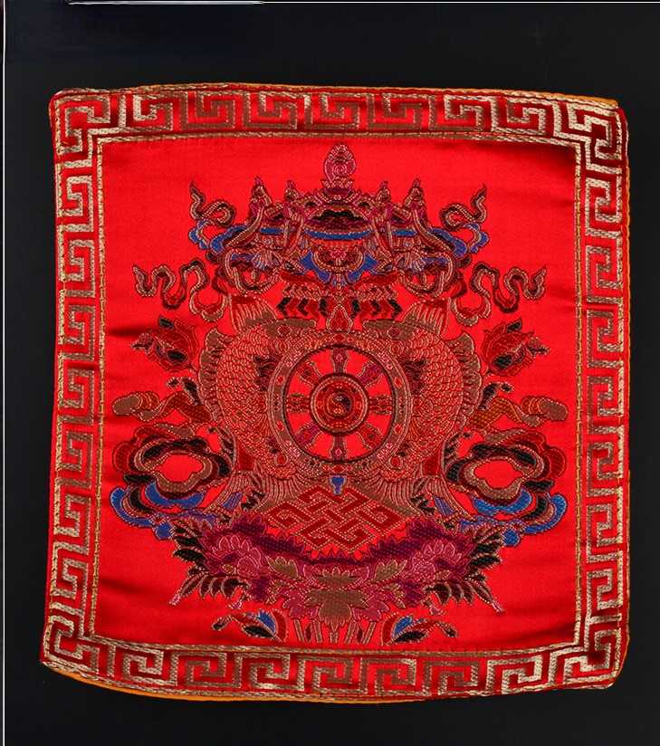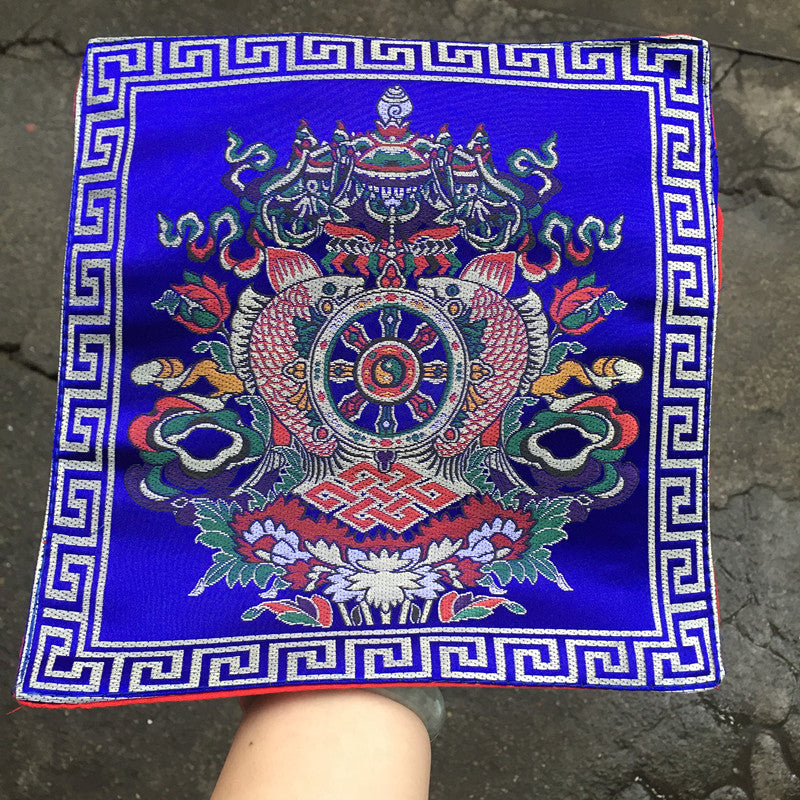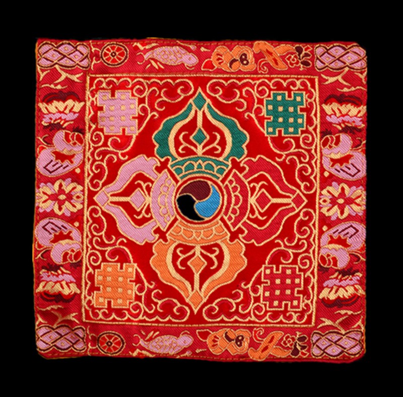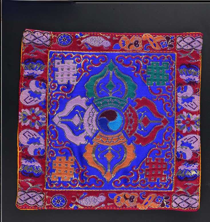 Tibetan Style Cloth Mat Embroidered with Eight Auspicious Crosses, Diamond Pestle, Bell Pestle, Tablecloth