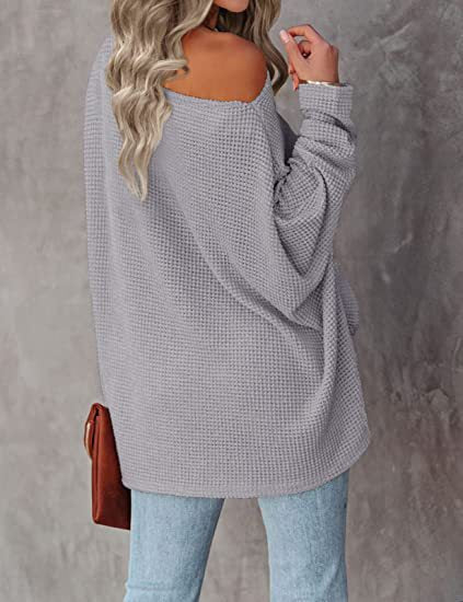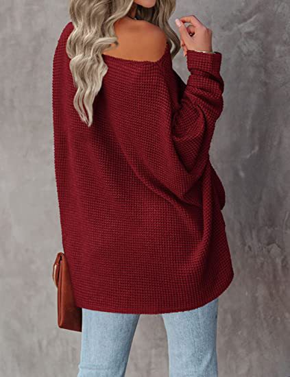 Autumn and winter new knitted bat long-sleeved solid color top women's