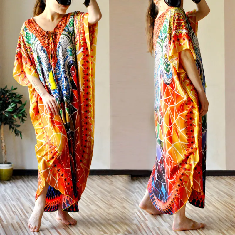 Boho Quick-drying Long Kaftan Bikini Cover-ups Retro Plus Size Summer Dress Women Clothing Beach Wear Swim Suit Cover Up Q831