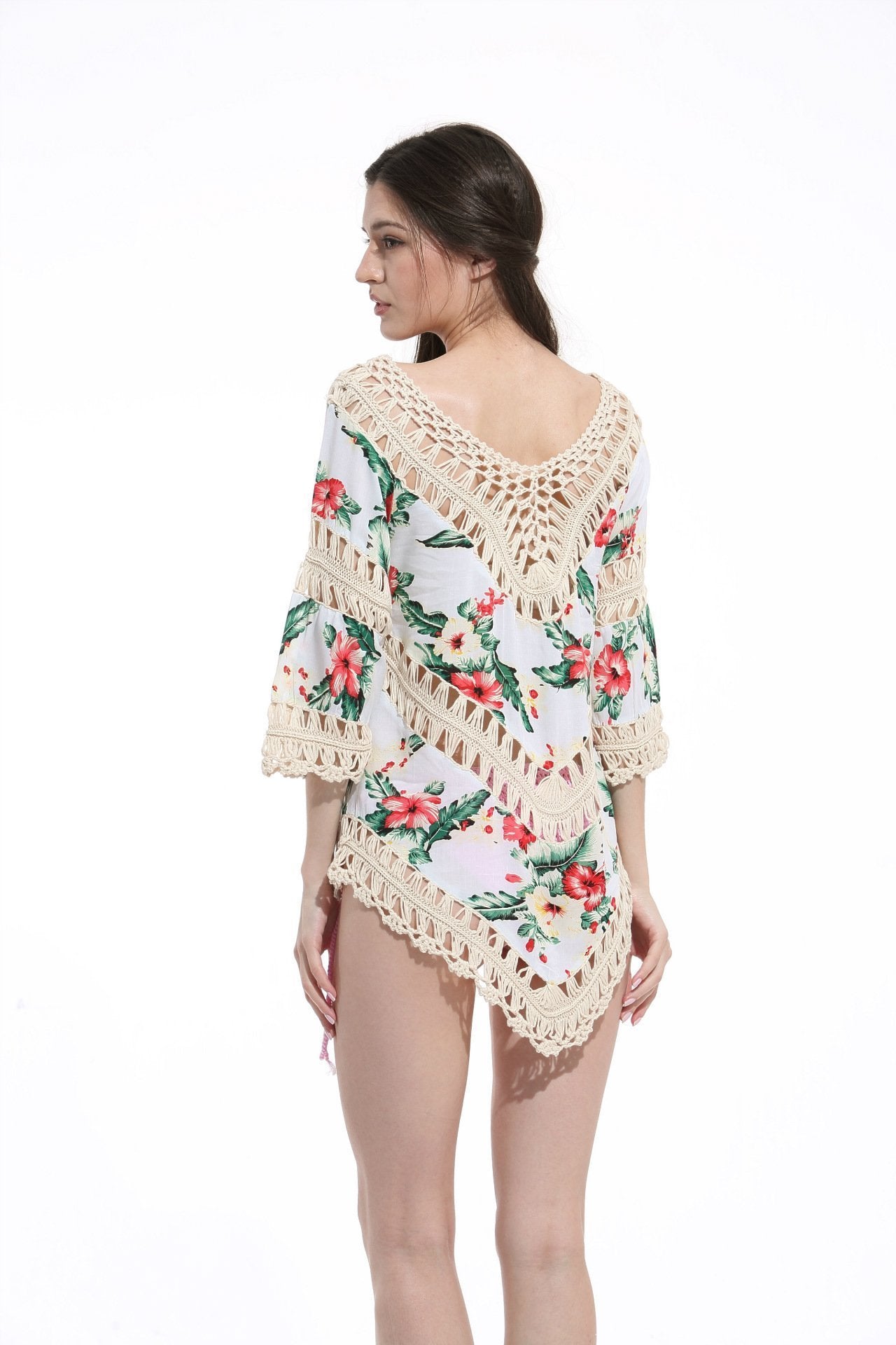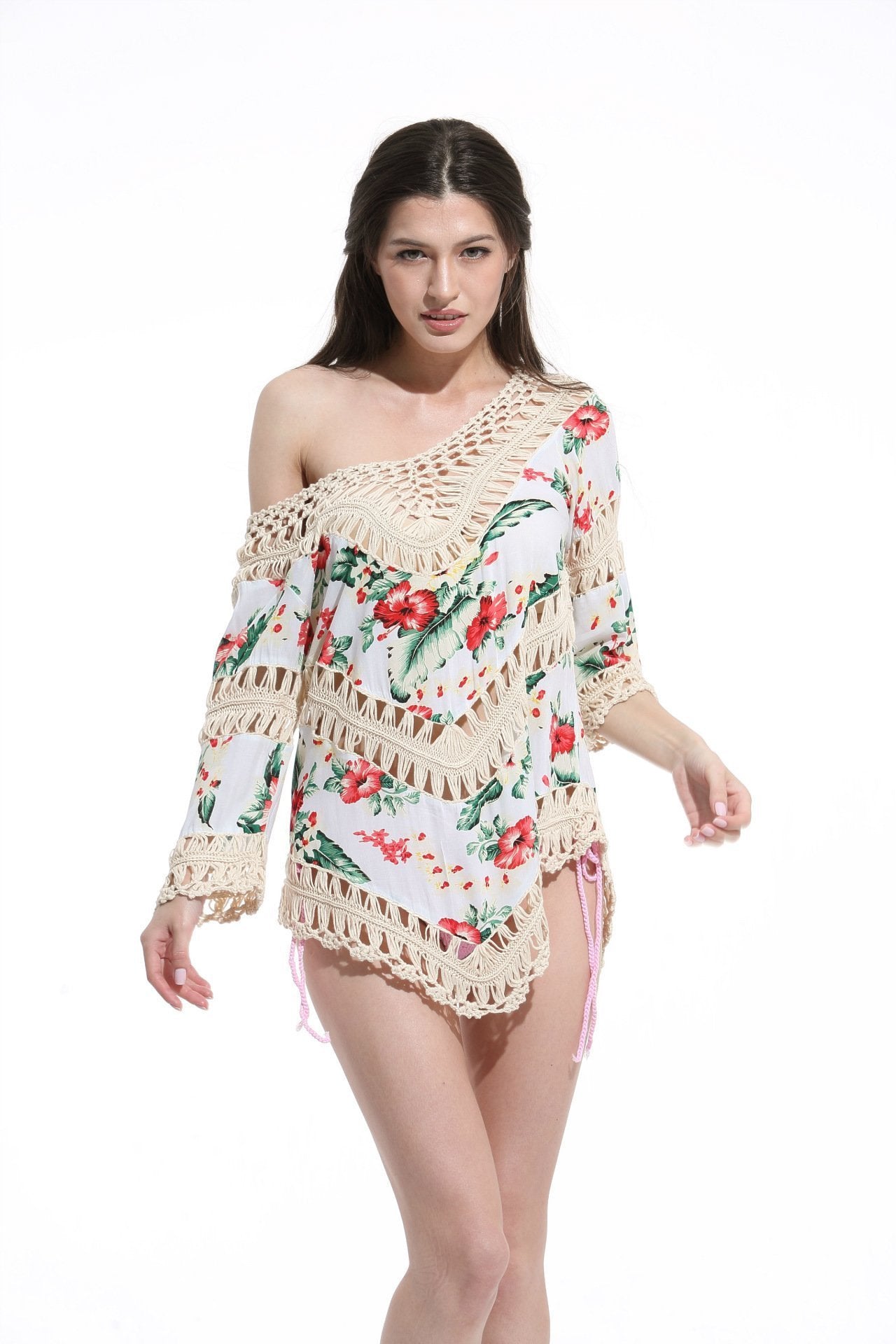 Print Lace Pullover Beach Swimwear Tops Bikini Cover Up
